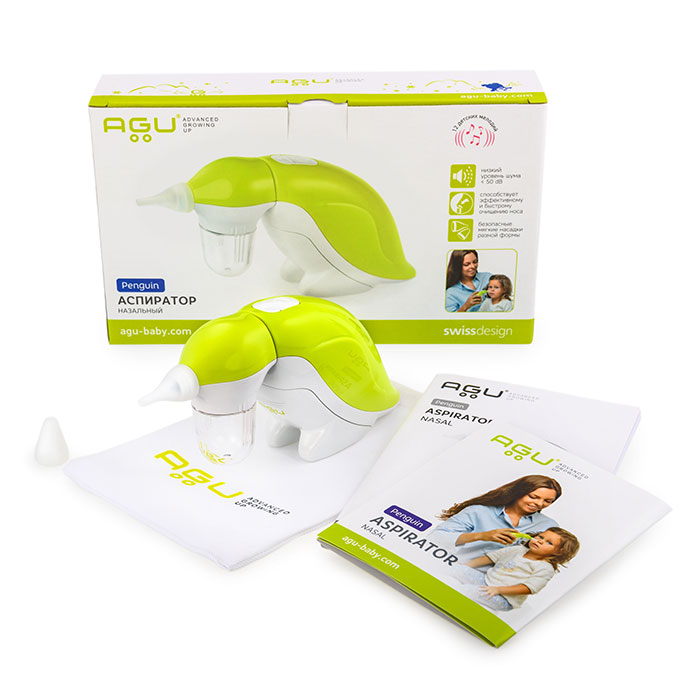 Aspirator do nosa AGU Penguin jest specjalnie zaprojektowany do oczyszczania nosa niemowlęcia lub dziecka w domu lub podczas podróży. Miękkie i wygodne końcówki aspiratora (dostępne zarówno w długich, jak i krótkich) zapewniają indywidualne podejście i precyzyjne bezpieczeństwo procedury. Urządzenie jest łatwe w obsłudze, jest kompaktowe i wygodne w użyciu.