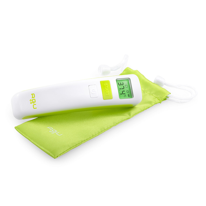Безконтактний термометр AGU вимірює температуру, не торкаючись дитини.