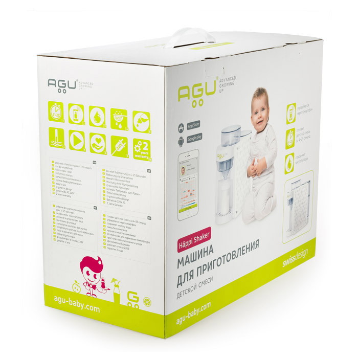 Машина для приготування дитячої суміші AGU Häppi Shaker створена спеціально для того, щоб істотно полегшити догляд за немовлям під час штучного вигодовування.